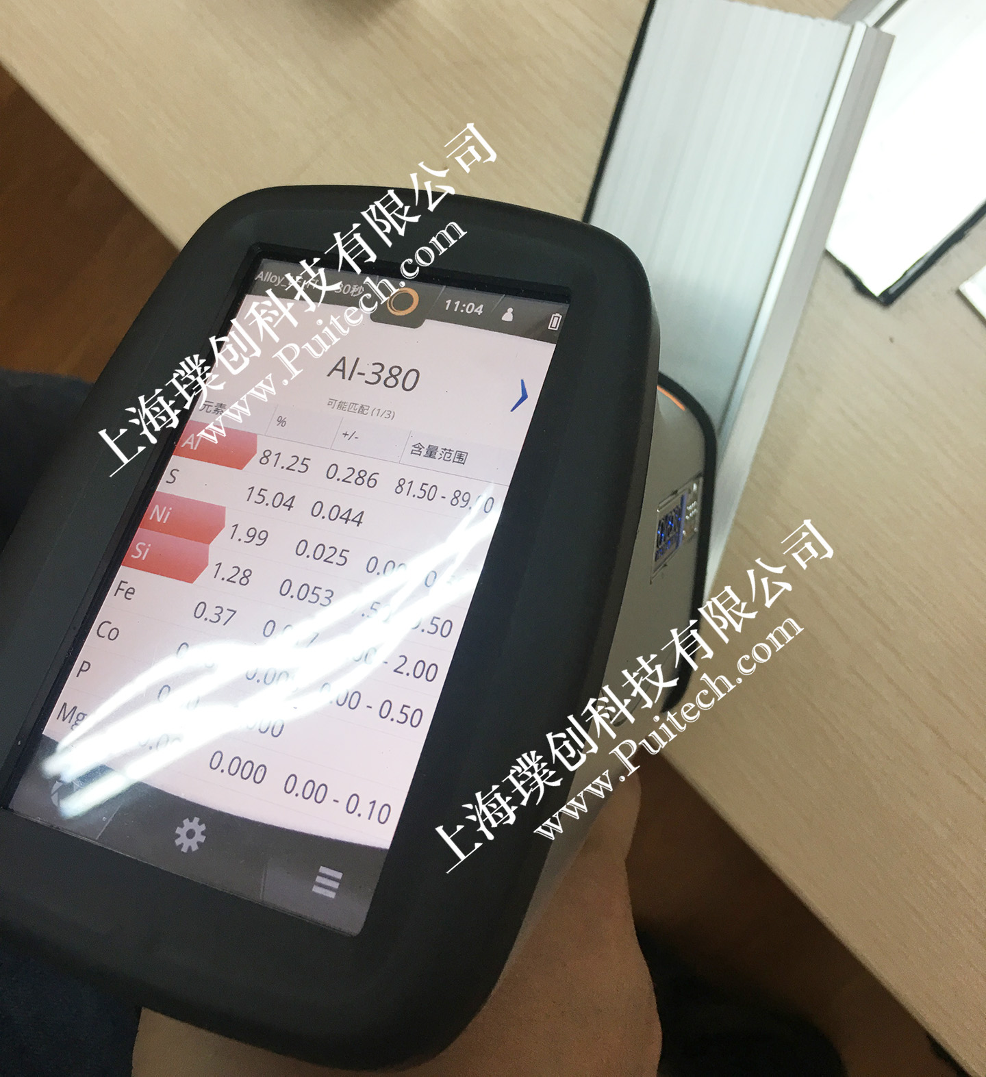 上海建科檢驗應用激光光譜儀快速檢測玻璃幕墻鋁合金框架